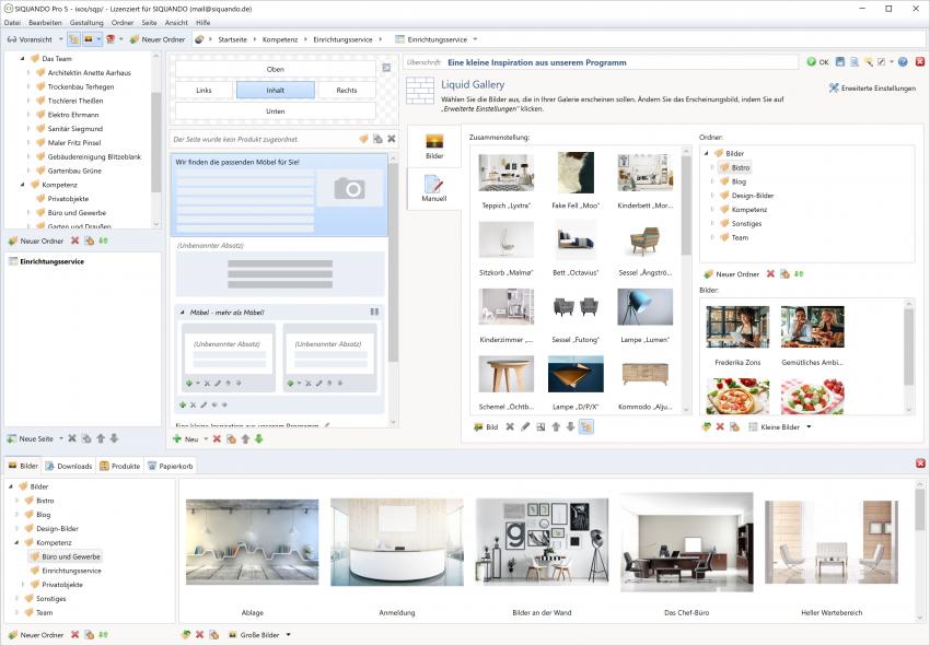 Die moderne und durchdachte Oberfläche von SIQUANDO Pro Web 5 macht es Ihnen leicht, Ihre Vorstellungen umzusetzen. Dank leistungsfähiger Werkzeuge gehen Arbeiten mühelos von der Hand.