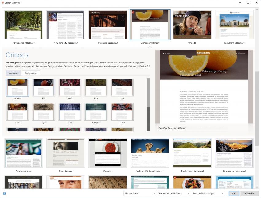 Mit dem neuen Pro-Design „Orinoco“ liegt Ihre Website voll im Trend und treibt responsive Ideen auf die Spitze: das attraktive Super-Menü ist auf allen Geräten über einen Navigationsbutton zu erreichen, gezielt eingesetzte Weißräume sorgen für optimale Lesbarkeit und setzen Panorama-Elemente eindrucksvoll in Szene.