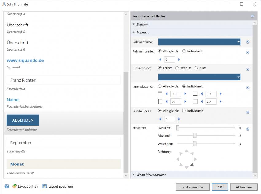 Eine der beliebtesten Funktionen von Pro Web ist der integrierte Design-Editor, mit dem Sie Ihre individuellen Vorstellungen in Ihrem eigenen Seitendesign umsetzen können. In SIQUANDO Pro Web 5 hat dieser nochmals hinzugelernt: neue Social-Links, verbesserte Gestaltungsmöglichkeiten und brandneue „Super Menüs“ eröffnen ungeahnte neue Möglichkeiten: